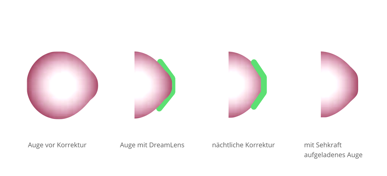 - Reversible Korrektur: Anders als bei einer Lasik-Operation ist die Anpassung der Hornhautform vollständig umkehrbar. Wird DreamLens nicht mehr getragen, kehrt die Hornhaut in ihren ursprünglichen Zustand zurück.